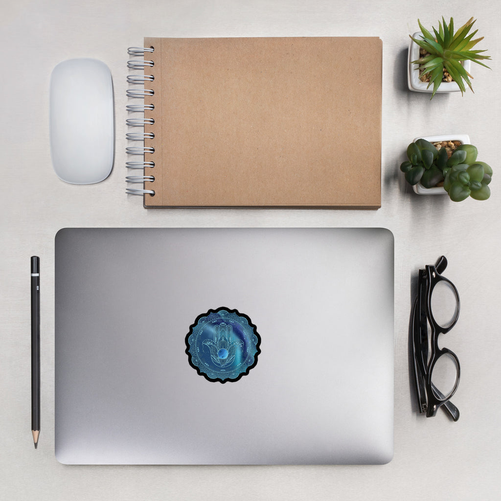 Channel protective energy with this stellar sticker featuring a Hamsa hand cradling a gorgeous planet at its core. Your lucky charm just got a cosmic upgrade!