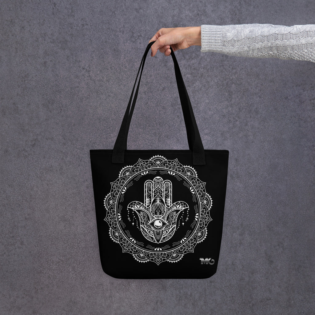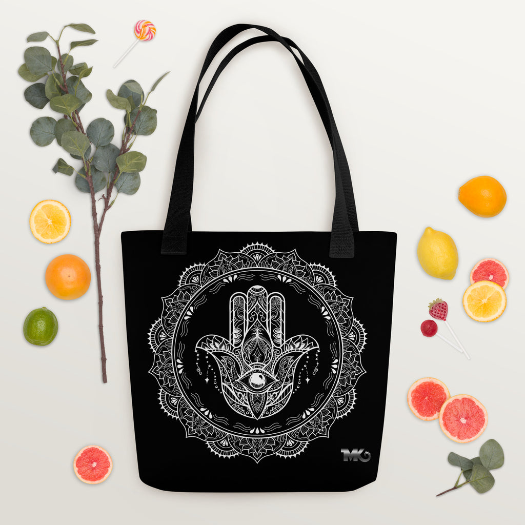 Take the sacred Hamsa Hand (خمسة) with you on all your adventures! This tote bag merges ancient protective symbolism with modern aesthetics, giving you a bag that's as meaningful as it is stylish. Celebrate cultural heritage while keeping those good vibes close and the negative energy far away. Perfect for daily errands, weekend outings, or whenever you need a spiritual pick-me-up in fabric form. Carry protection, spread positivity, and turn heads wherever you go!