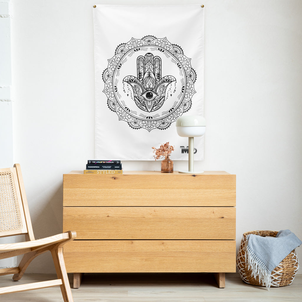 Bring ancient wisdom into your space with this detailed Hamsa (خمسة) Hand tapestry! This timeless symbol of protection gets a modern makeover, blending traditional spirituality and culture with contemporary style. Whether you're shielding yourself from negativity or simply celebrating a meaningful cultural icon, this piece serves as both a striking visual statement and a spiritual guardian for your walls. Let good vibes flow and keep the bad ones at bay!